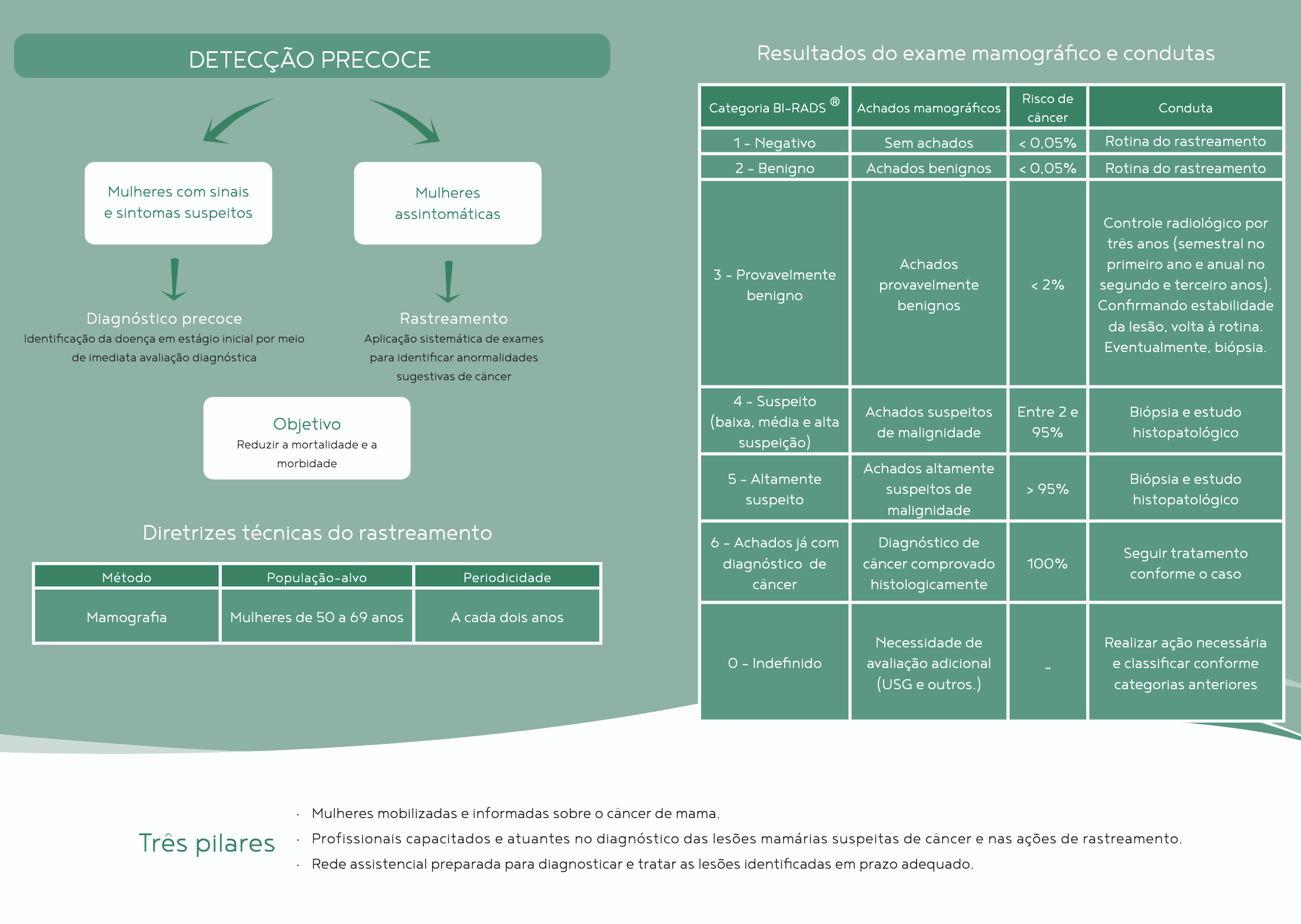 - Mamografia: Um raio X que permite identificar o câncer quando o tumor ainda é muito pequeno e não é palpável.