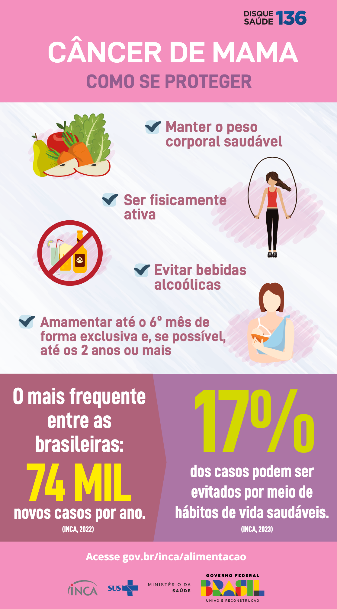 - Estilo de vida saudável: A importância da atividade física, alimentação balanceada e controle do peso para a prevenção não só do câncer, mas de várias outras doenças.