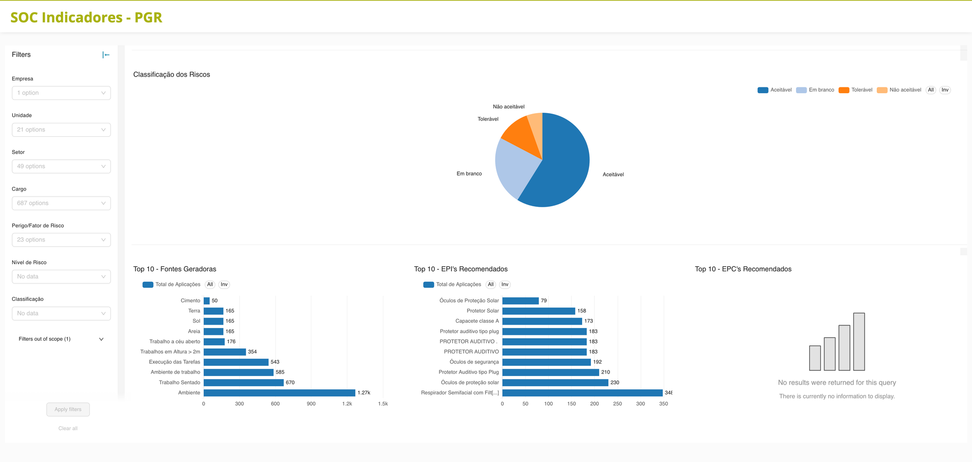 - Gestão Operacional Centralizada: Reunir dados de diferentes áreas (exames, EPIs, treinamentos) em dashboards dinâmicos, facilitando a visualização em tempo real.